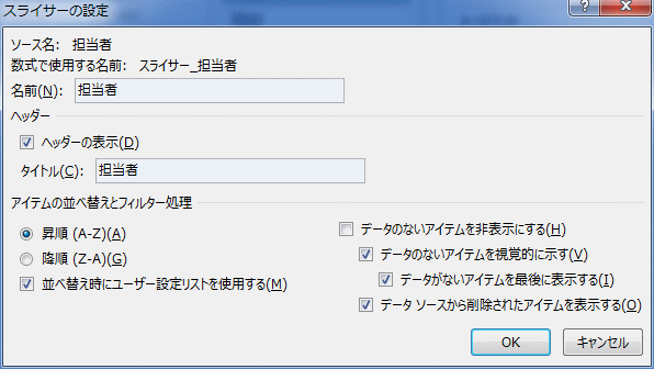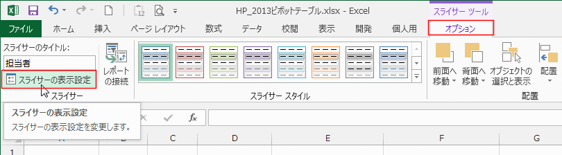 [スライサー]グループの[スライサーの表示設定]を選択します。
