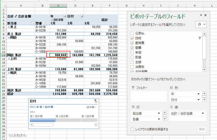よねさんのExcelとWordの使い方|エクセル2013基本講座:目次|ピボットテーブルとピボットグラフ|ピボットテーブルの詳細データを別シートに書き出す