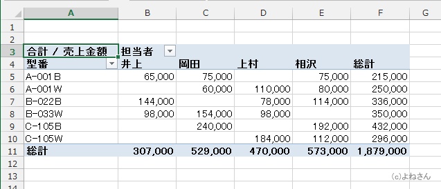 よねさんのExcelとWordの使い方|エクセル2013基本講座:目次|ピボットテーブルとピボットグラフ|ピボットテーブルの集計方法を変更する