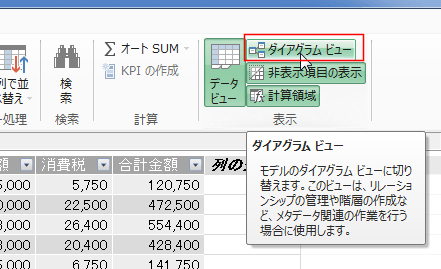 PowerPivot for Excelの[ダイアグラムビュー]をクリックしてオンにします。