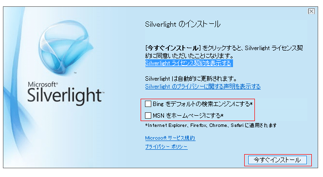 するとSilverLightをインストールする必要がある旨のメッセージが表示されます。