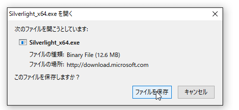 - ブラウザが開き下図のようなメッセージが表示されます。[ファイルを保存]ボタンをクリックしてファイルをダウンロードします。