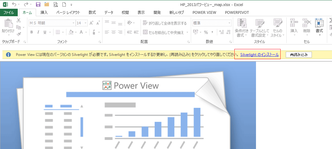 - パワー ビューを利用する場合は、SilverLight 5.0以上のインストールが必要みたいです。