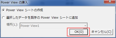 - Power Viewの挿入で「Power Viewシートの作成」にチェックが入っているのを確認して、[OK]ボタンをクリックします。