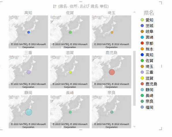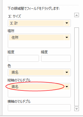 - 縦軸のマルチプルに「県名」を配置します。