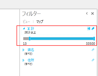 バーをドラッグして、表示データを「2813以上」に絞った例です。
