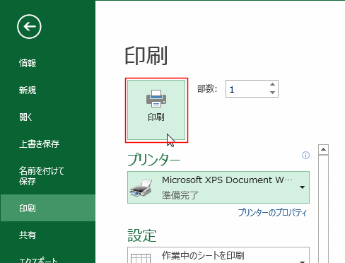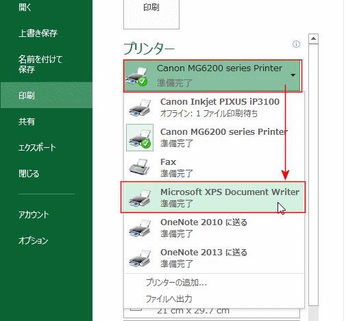 よねさんのExcelとWordの使い方|エクセル2013基本講座:目次|印刷|印刷でMicrosoft XPS Document Writerを使う