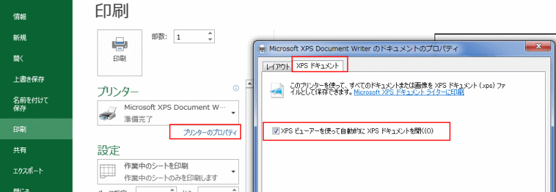 - 上記手順ではXPSファイルを作成後にプレビューが表示されました。この設定はプロパティで行います。