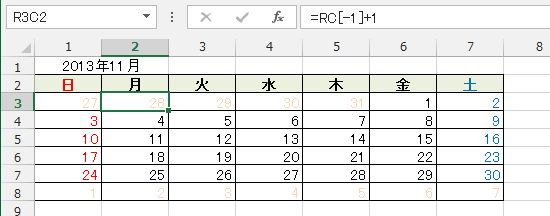 - RがRowですので行位置を示し、CはColumnで列位置を示すということになります。