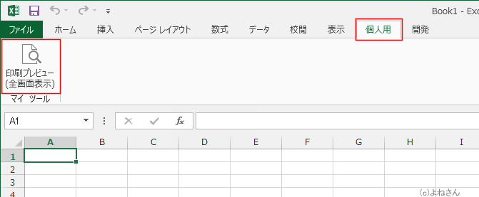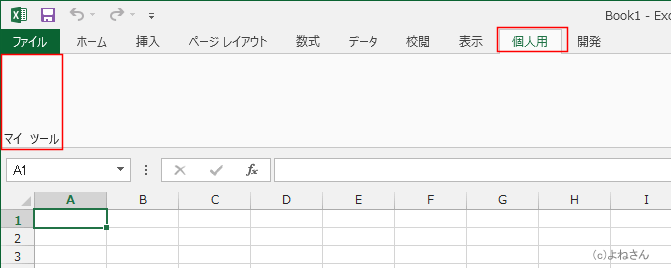 [個人用]タブが作成され、[マイツール]グループが作成されているのが確認できました。