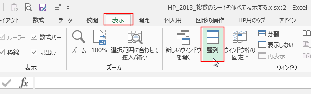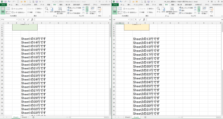Excel2013で複数のシートを並べて表示する topへ