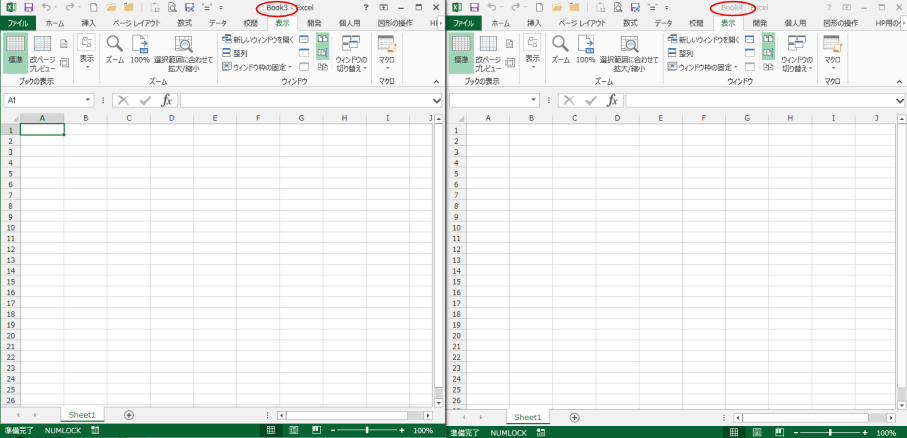 - 下図はファイル Book3とBook4を並べて表示した例です。