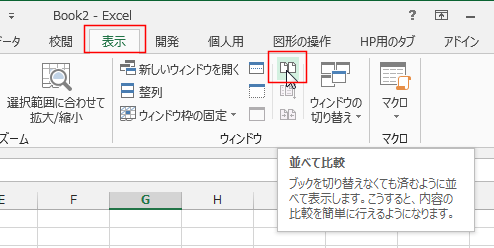 Excel2013では異なるファイルを並べて表示することもできます