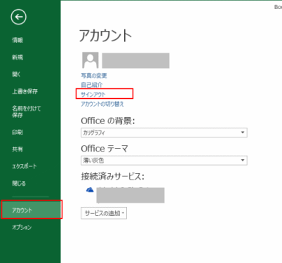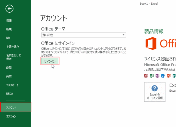 よねさんのExcelとWordの使い方|エクセル2013基本講座:目次|起動と終了|バックステージビュー:アカウント:サインインとサインアウト