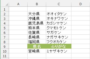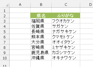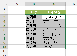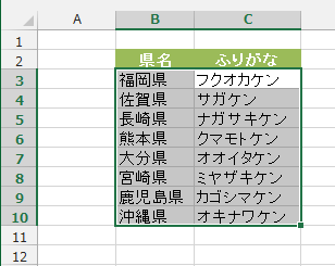 - C列の「ふりがな」を基準に並べ替えたいので、C3:B10とセル範囲を選択しています。