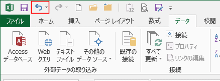 - 「元に戻す」ボタンはクイックアクセスツールバーにあります。キーボードで操作するなら、ショートカットキーは[Ctrl]+[Z]です。