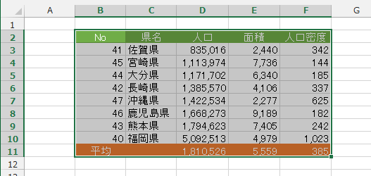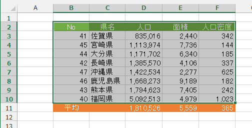 - [Ctrl]+[Shift]+[*]キーを押してデータ範囲を選択します。