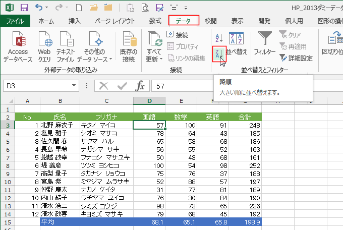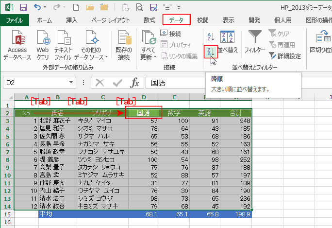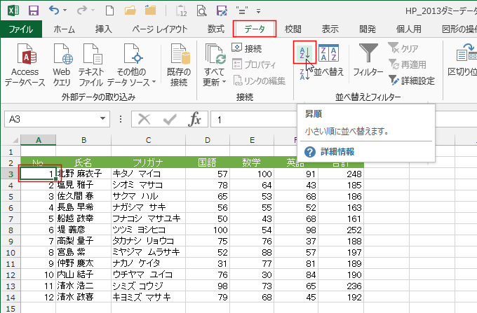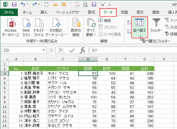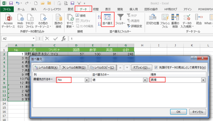 よねさんのExcelとWordの使い方|エクセル2013基本講座:目次|並べ替え|並べ替えがうまくできない?