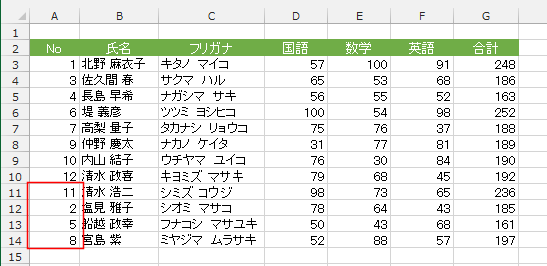 | 並び替えの順序 | 見出し行が並び替えられる | データ範囲が適切でないケース |