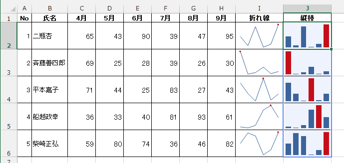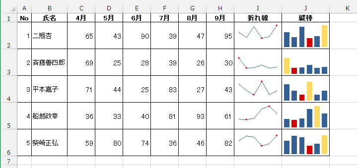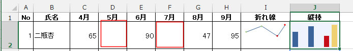 - 下図のようなスパークラインが作成されました。