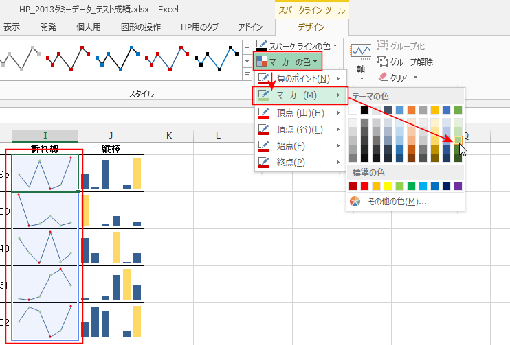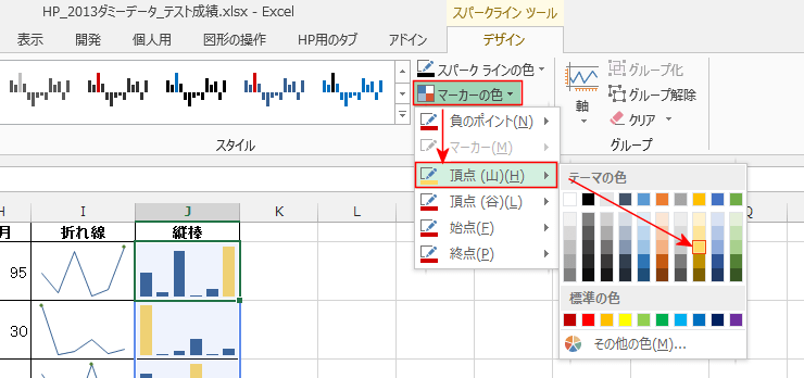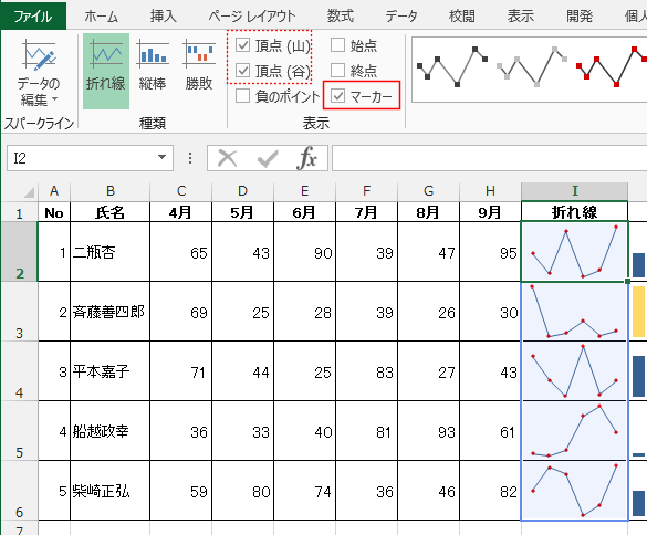 - スパークラインの最大値にマーカーが表示されました。