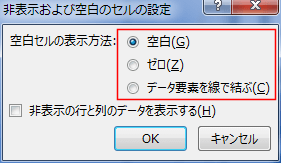 - 「空白」「ゼロ」「データ要素を線で結ぶ」を選択することができます。