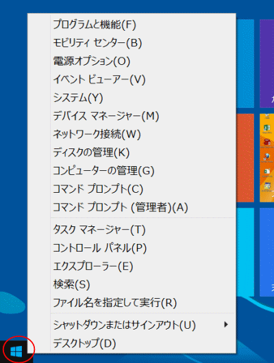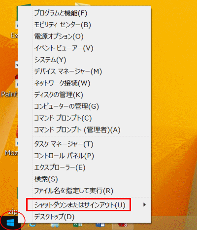 - スタート画面でも左下にマウスを近づけるとスタートボタンが表示されます。