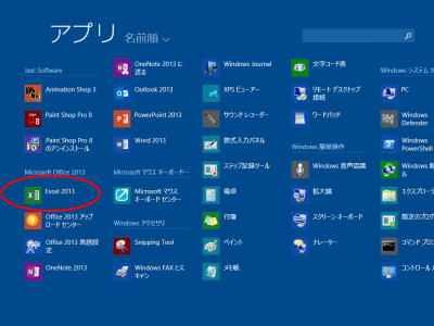- Excel2013のアイコンは右の方にMicrosoft Office2013のグループに配置されていました。