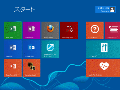 - スタート画面では下図のような感じで、Excel2013のアイコンが配置されていました。アップグレード前のWindows8と同じ状態です。