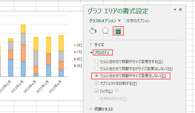 [グラフのオプション]→[サイズとプロパティ]→[プロパティ]と選択します。