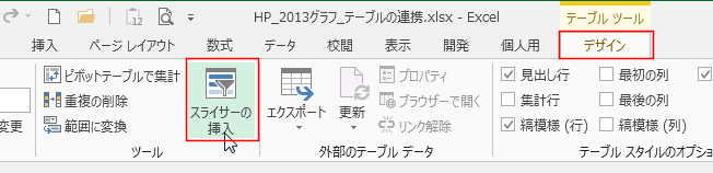 [ツール]グループの[スライサーの挿入]を実行します。