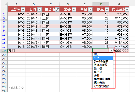 よねさんのExcelとWordの使い方|エクセル2013基本講座:目次|テーブル機能|エクセル2013基本講座:テーブルで集計する