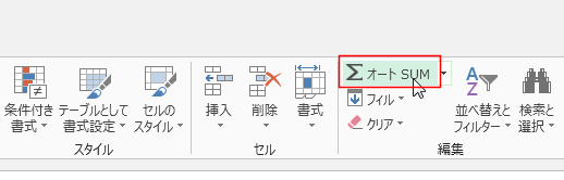 - [ホーム]タブの[オートSUM]をクリックします。