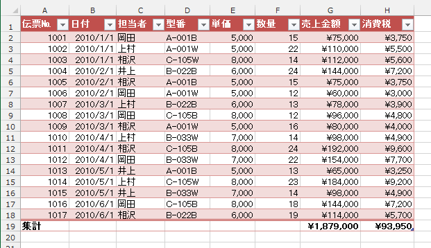 - テーブルの最下行に集計行が作成されました。