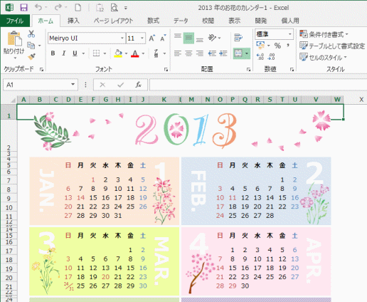 - 「2013年のお花のカレンダー」をクリックして選択しました。