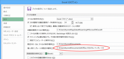 - C:\Users\(ユーザー名)\Documents\Officeのカスタム テンプレート と表示されました。