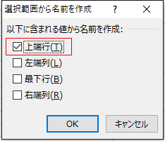 - 「上端行」にチェックを入れて[OK]ボタンをクリックします。