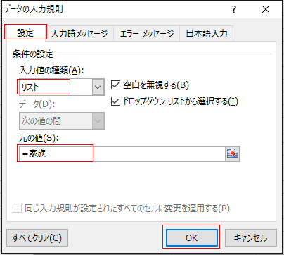 元の値に「=家族」と入力します。