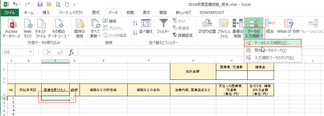 よねさんのExcelとWordの使い方|エクセル2013基本講座:目次|テンプレート・アドインなど|確定申告の医療費控除の集計表をExcelで作成する