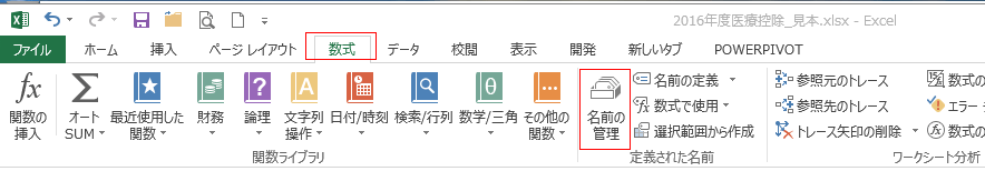 - [数式]タブの[名前の管理]を実行します。