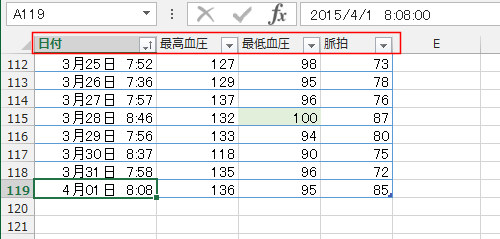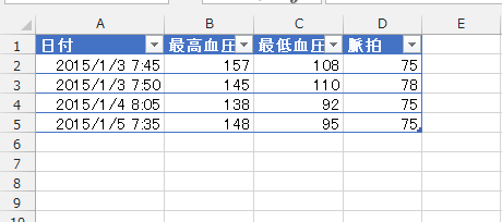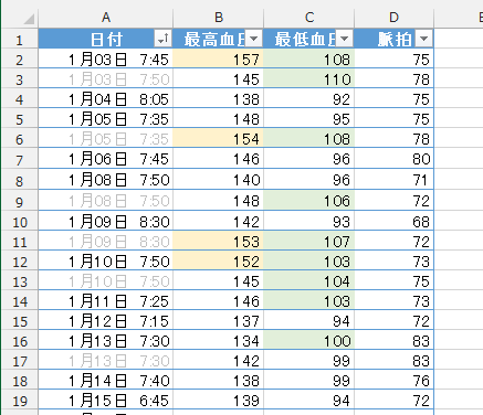 血圧の測定結果をExcelで管理したい