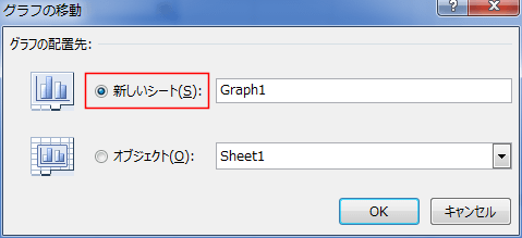 - [新しいシート」にチェックを入れます。ここではシート名は「Graph1」となっています。
