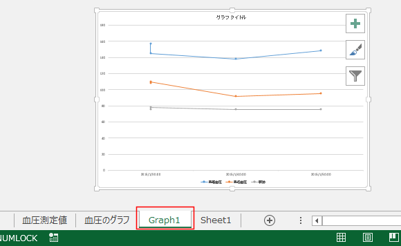 - 「Graph1」シートにグラフが移動しました。
