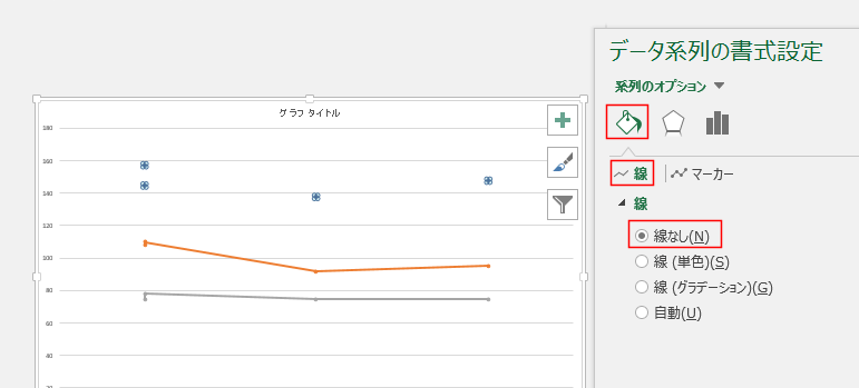 系列のオプションで「線なし」としました。