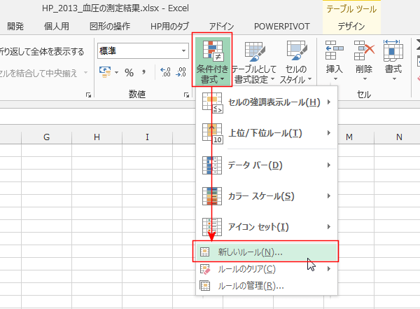 データに条件付き書式を設定して高い測定値は目立つようにする