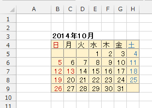 ここでは、カレンダーを作成しました。