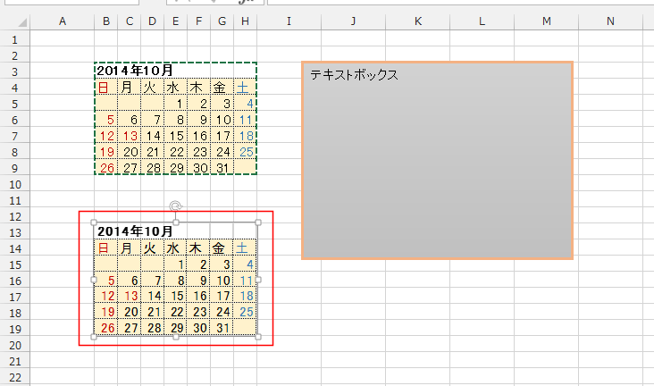 - 一緒に移動するには、一番外側の枠線(点線で表示されています)をつかんでドラッグすると一緒に移動することができます。