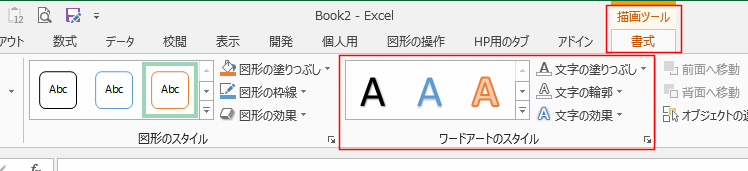 - 描画ツールの書式タブを選択します。