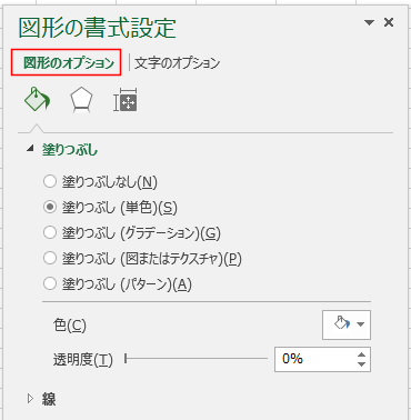 「図形のオプション」が選択された状態で開きます。