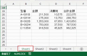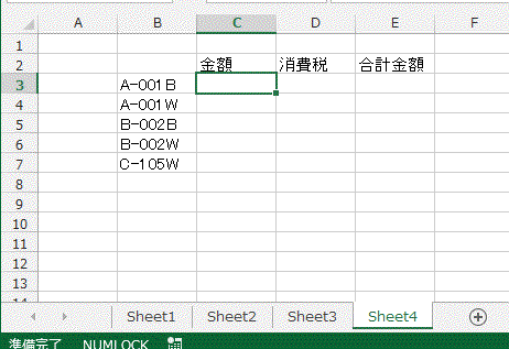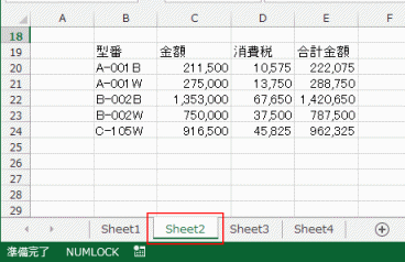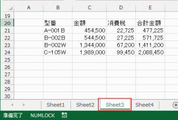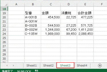 また、Sheet3には型番が1つ抜けた状態になっています。